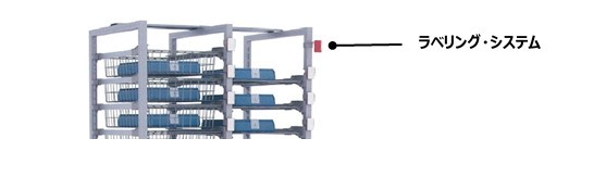 ラベリングと物品を一つずつ棚で管理できる構造で、棚板・バスケットを取り外して移動・搬送・清掃をしても、ラベルが元の位置に残るため、物品管理がし易くなり、ヒューマンエラーや準備時間の短縮につながります。