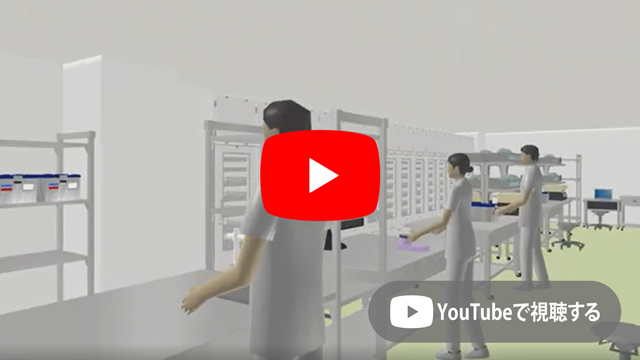 病院内で使用された医療器材の回収から洗浄・滅菌、払い出しまでオートメーション化された器材再生処理の流れをジオラマで確認いただけます。