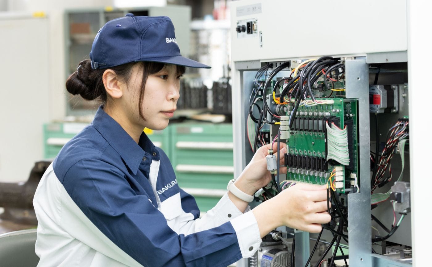 2023年秋ごろからは新規製品開発担当として、装置内のケーブル配線を担当しています。また、様々な国や地域に対応させる必要性や、新しい機能の追加も検討しており、動作させたい内容に合わせて基板を制作したり配線して検証しています。なかなかうまくいかないこともありますが、さまざまな視点から考え、ミスを少なくするように心がけています。