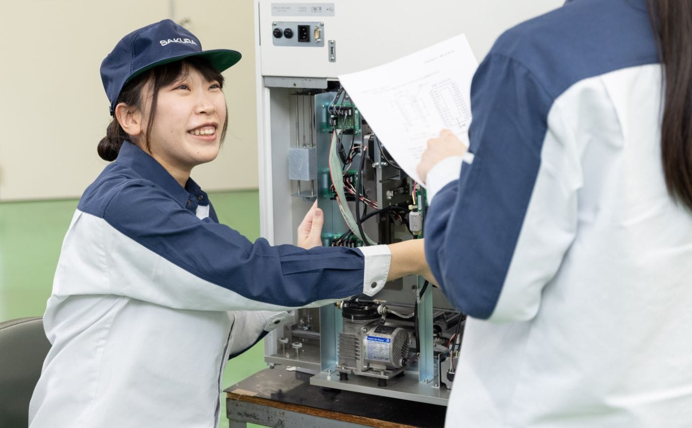 既存製品のフォロー対応を行っていた頃、先輩方から「現状より少しでもより良い装置にしよう」という言葉を頂いたり、組み立て作業をしている現場の方から「可能であればこういった組み立てだとやりやすい」という意見も頂いたりしました。今までやりにくさを少しでも感じていた箇所を部品変更と合わせて組み立て方法も変えたところ、現場から感謝の言葉をいただくことができ、「頑張って良かったな」と感じました。